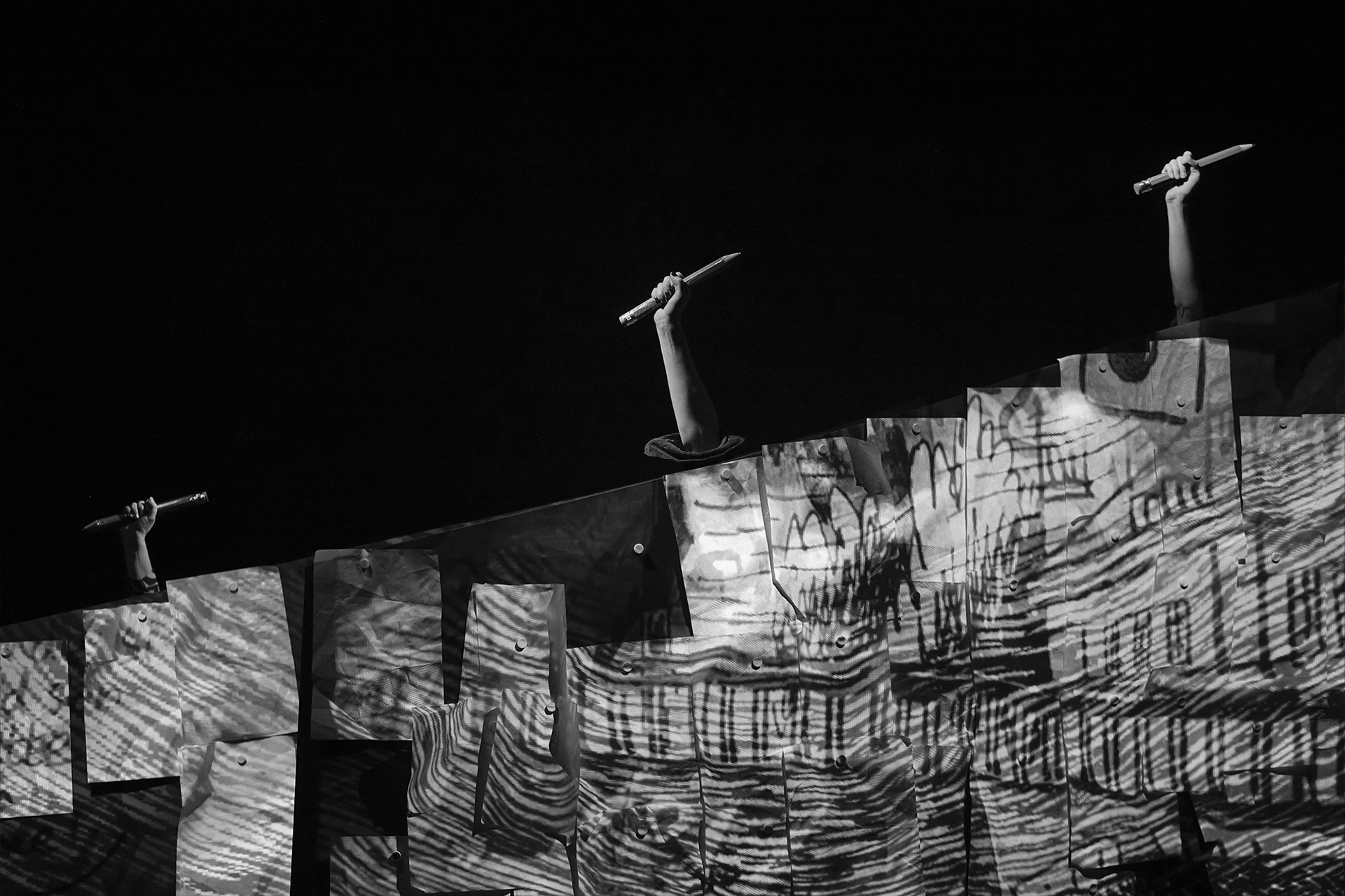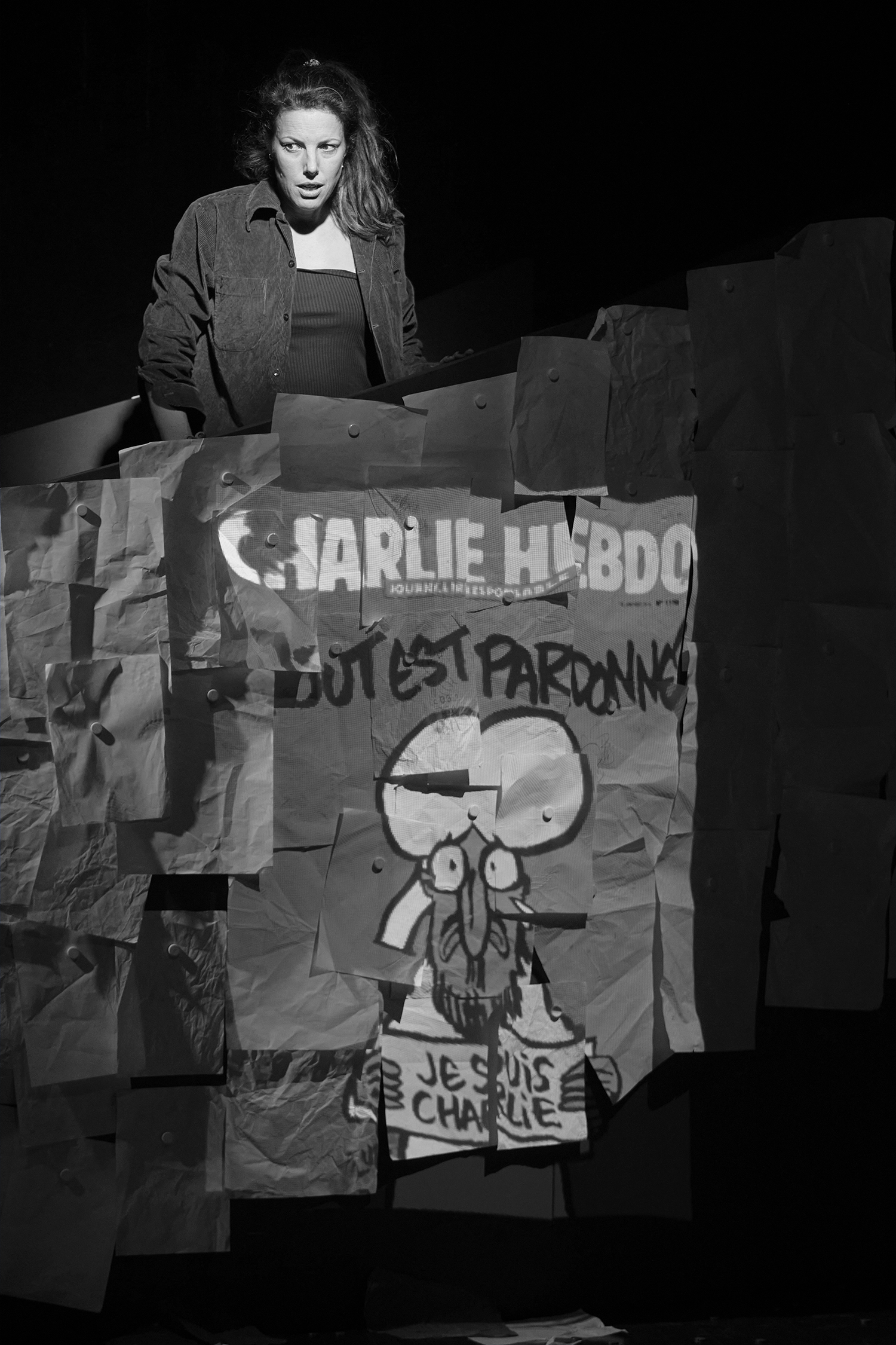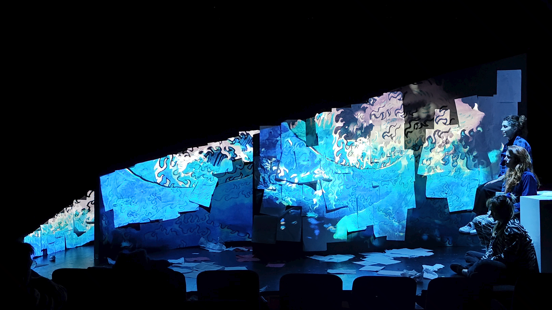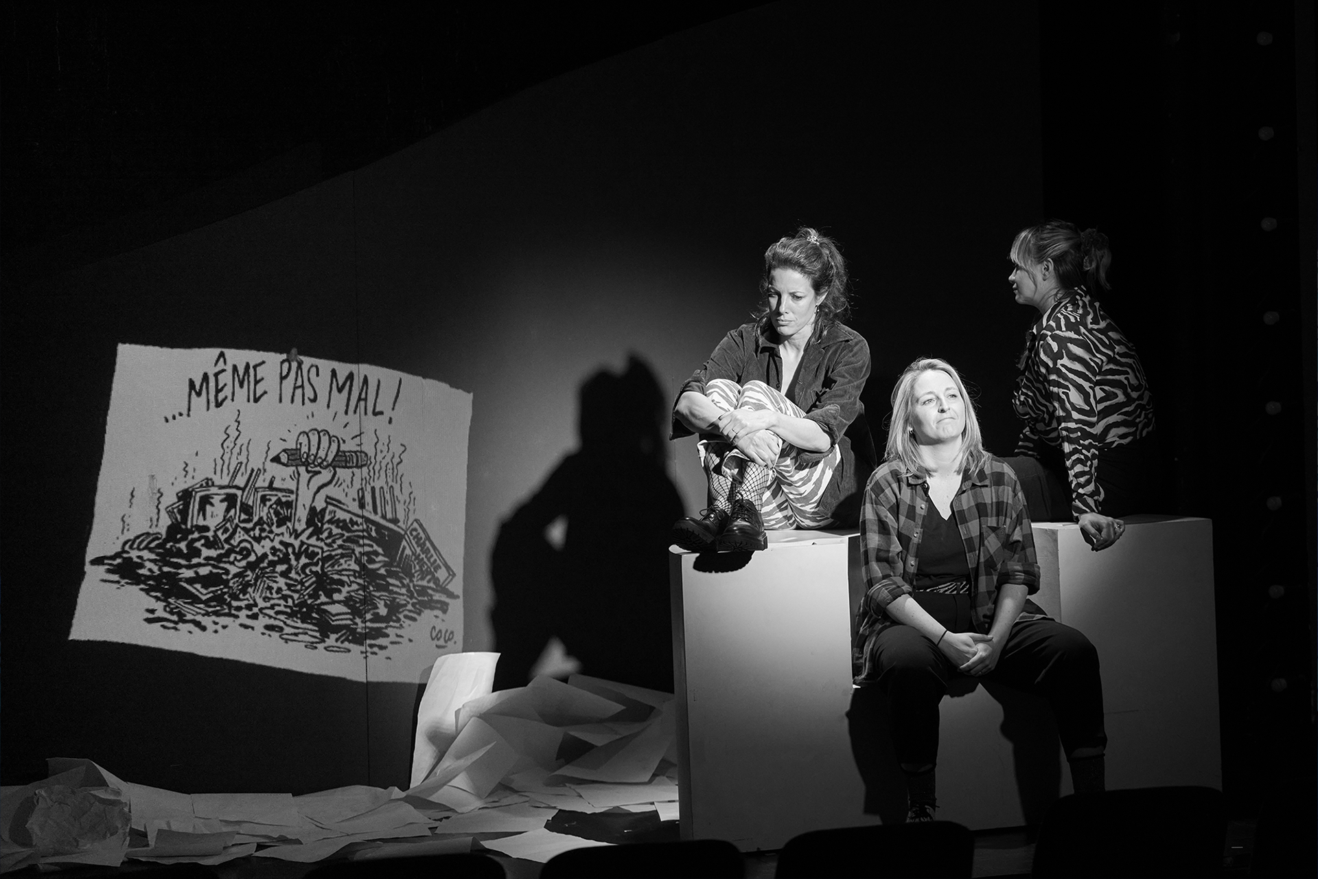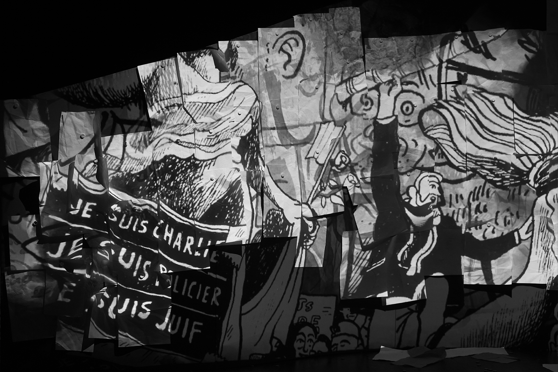 Avec une amie designer et le metteur en scène, nous nous sommes inspirés et avons sélectionnés des dessins de la BD, ils ont ensuite été projetés sur une scénographie. Il y avait un vrai travail de composition et d'animation. Et tout ça devait être en parfaite synchronisation avec le jeu des comédiennes.