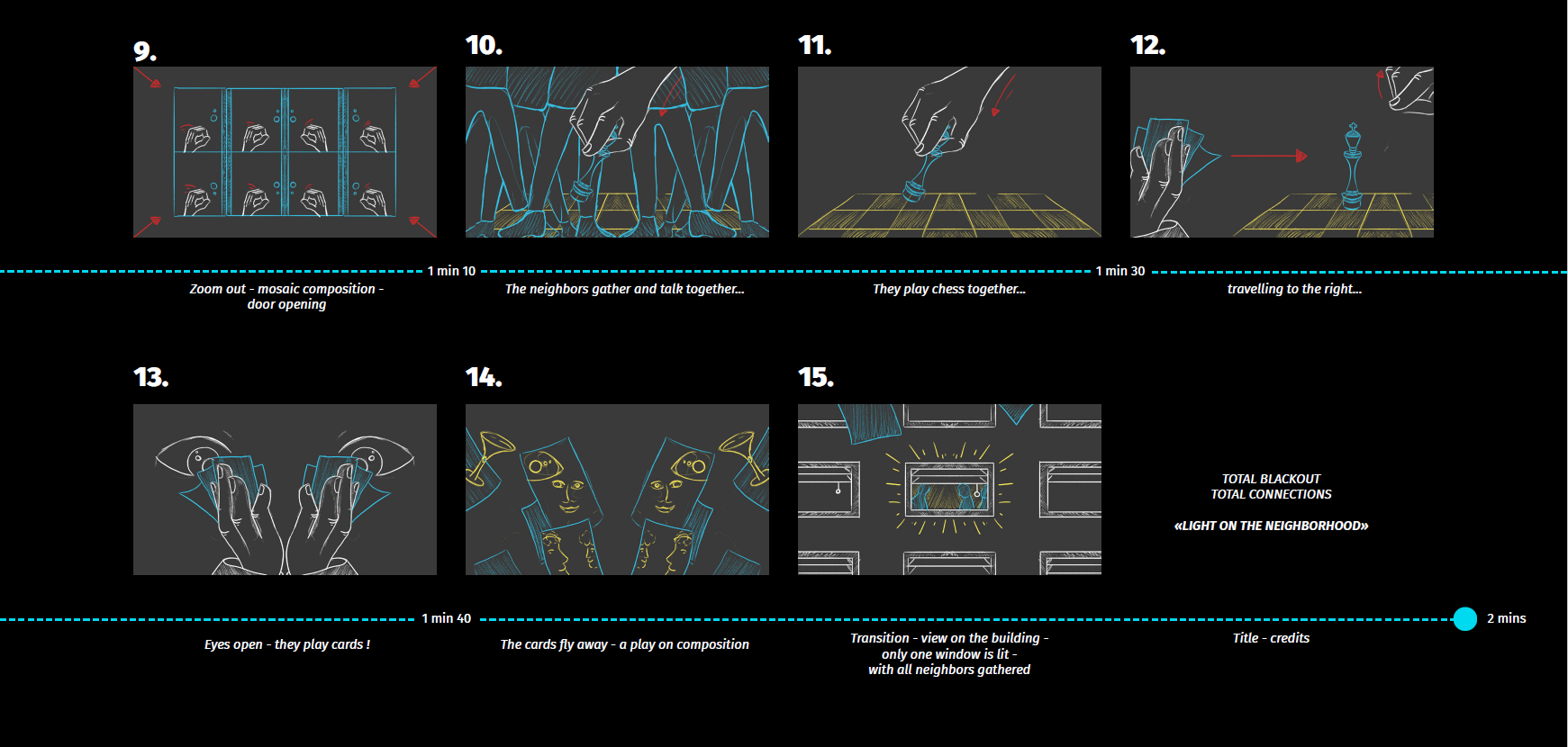The neighbors gather and find solutions to pass the time. They light a candle,