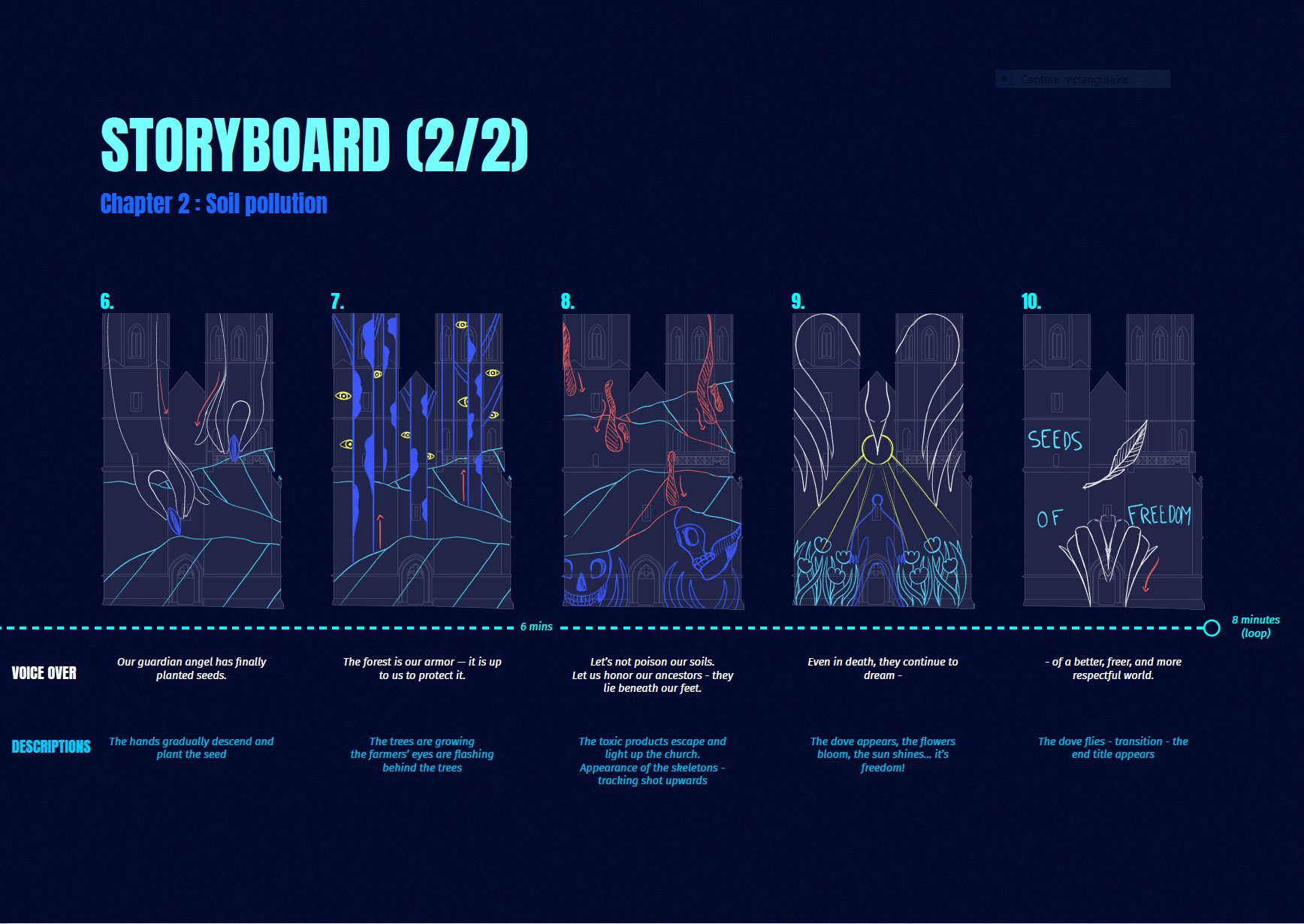 My idea is to pay tribute to the Peasants’ War (1525) while addressing present-day issues: the inequalities faced by farmers and soil pollution. With a poetic tone and a strong visual identity, I want to tell a story filled with hope and carried by a breath of freedom.